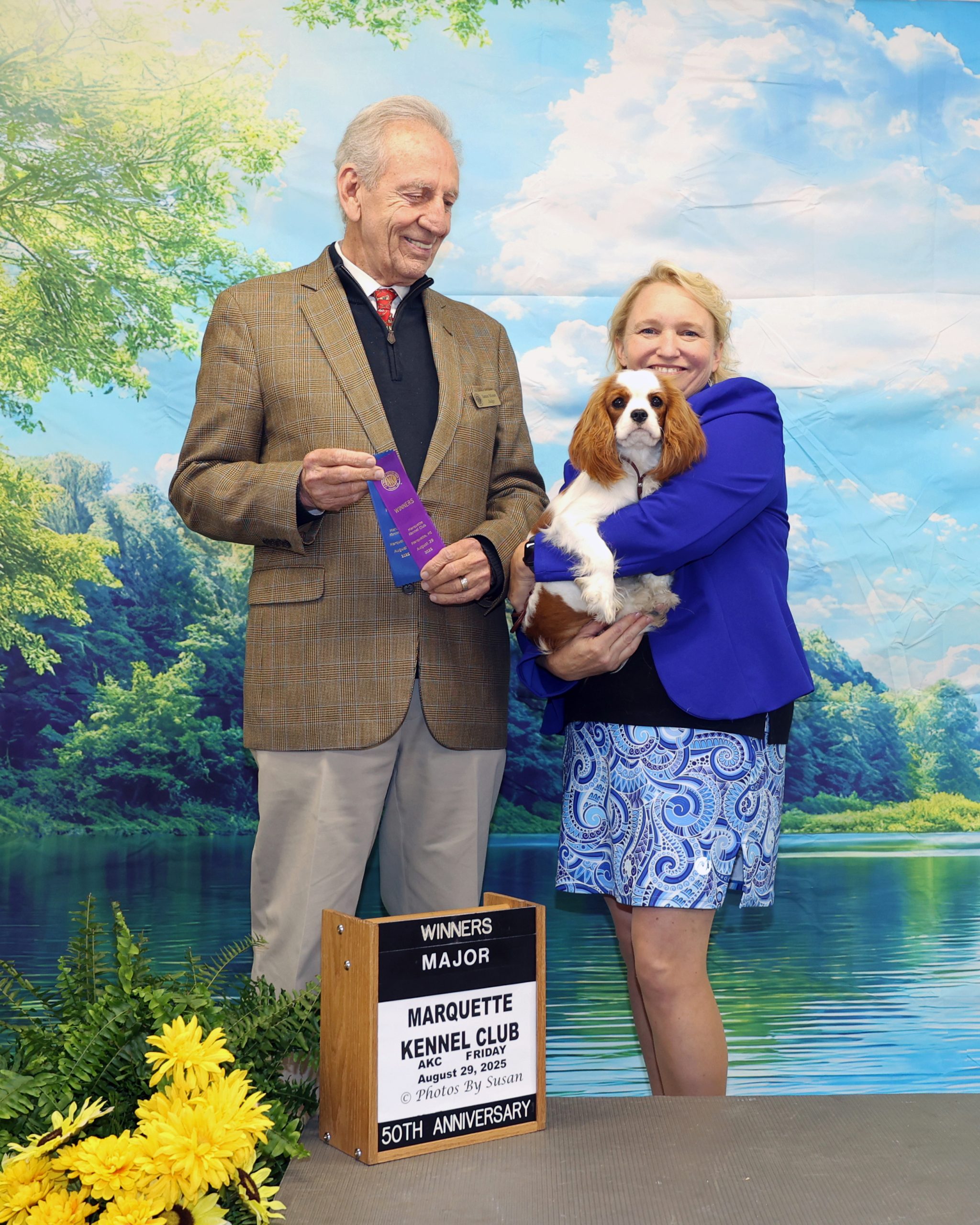 This was a fun weekend. Pearl took RWB at the first day of GLCKCSC concurrent Specialty at the West Michigan Harvest Cluster. Her sister Faith took WB the next day for her first Major and then the last day Pearl stepped up and took WB for 2 more points towards her Championship and their littermate brother took Best of Winners and Winners Dog for his first 2 points towards his Championship.